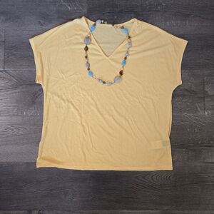 Light weight boxy vneck top. Oversized sleeve openings create a flowy feel. In excellent condition with no stains or holes. Never been worn or washed. I apologize for the wrinkles that are from hanging in my closet. Measurements are included in the pictures.