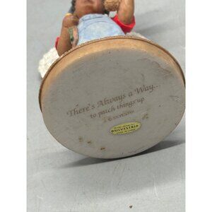 Boy Angel Figurine With Teddy Bear & Baseball Bat Hand-Painted Resin 5.5" Tall C