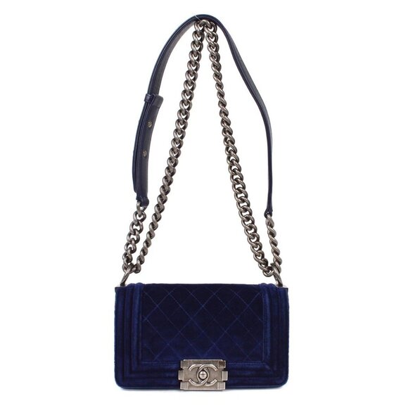 Boy Chanel Navy Velvet Small Chain Shoulder Bag XX03513