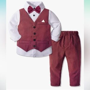 Boy Formal Suit Set, 4-Piece Dress Suit with Long Sleeve Bowtie Shirt and Vest Pant Set, Toddler Boy Casual Suit for Wedding Red White 5-6 Years like new worn one time size 130