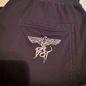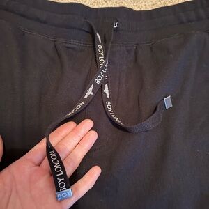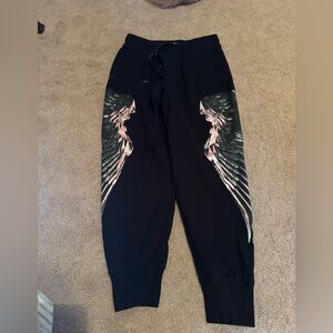 Super soft sweatpants from boy London. Classic black drawstring waistband with large metallic pink angel wing print. Good quality and condition