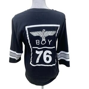 Boy London black/white 100% cotton 3/4 sleeve top/tee. “Leave the boy alone”. Euc