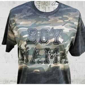 Boy Mama Camo Green Military Custom Bleached Tee, Size Medium
