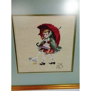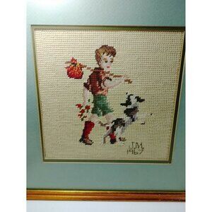 Boy Play with Dog Girl Walk with Umbrella Wall Hanging Frame Needlepoint Set 2