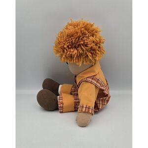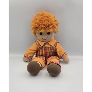 This is a 14" tall Boy Plush Doll by Darice Inc. The doll has curly orange hair, brown eyes, and a medium complexion. It is made of cloth and weighs 4.5oz. This original doll is intended for youth aged 3 and up, and is not antique or vintage. It was manufactured in China.