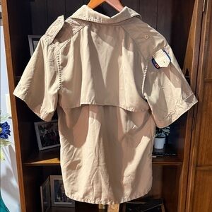 Explore the outdoors in style with this tan short sleeve shirt. Perfect for scouting outings or adventures.
