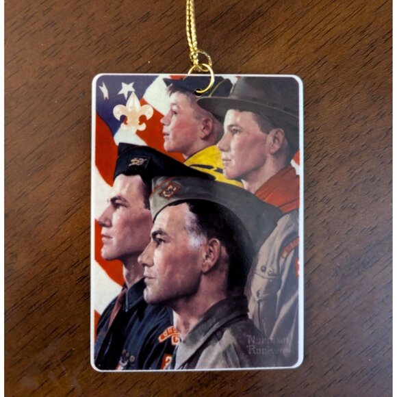 This 1996 Hallmark ceramic ornament, titled "Growth of a Leader," features the timeless artistry of Norman Rockwell. Celebrating the Boy Scouts of America's enduring legacy of character building, it showcases the evolution of young scouts into leaders. A collectible piece that embodies tradition, education, and a commitment to personal growth.