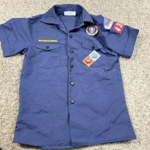 Boy Scouts of America Uniform Shirt Youth Large Blue Button Up Patches