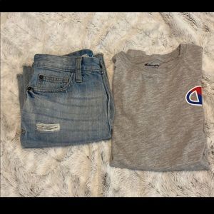 I cat and jack shorts size 12 one champion shirt size l. Jo flaws.