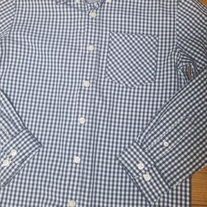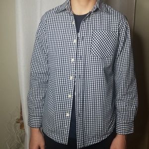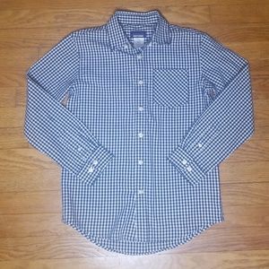 Boy button up long sleeve shirt in navy blue/white used but in excellent condition