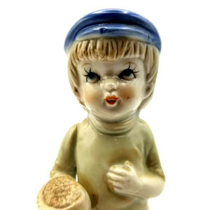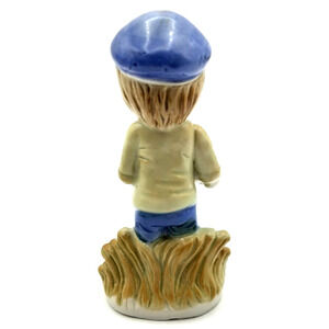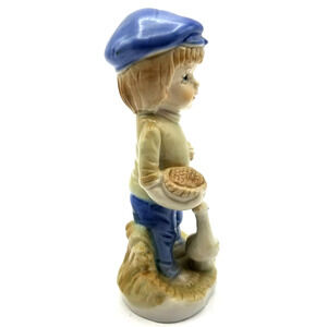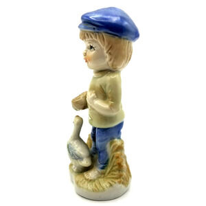 Boy in Blue Cap with Goose 5.5" Vintage Porcelain Figurine Made In Taiwan