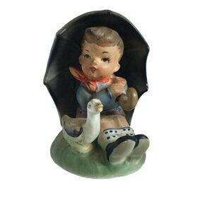 Boy with Duck and Umbrella Figurine Japan Lefton ?