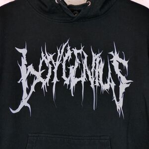 BoyGenius Band Hoodie Mens M Black Always An Angel Never A God Rock Indie Merch