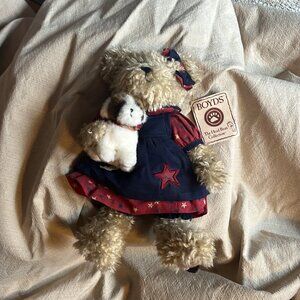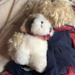 Perfect for gift-giving, this Boyds Bears Lucy with Munchkin is from the Boyds Best Dressed Series. Lucy is a 10-inch tan chenille bear holding a 4-inch tan and white plush dog named Munchkin.
