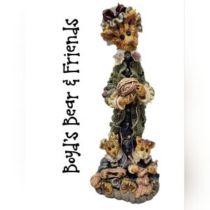 This beautiful figurine from Boyd's Bear & Friends features Purrscilla with her friends Darby & Jasper knitting pussenboots. The intricate details and hand-painted finish make it a perfect addition to any collection. The multicolor ceramic material and traditional style give it a timeless appeal.