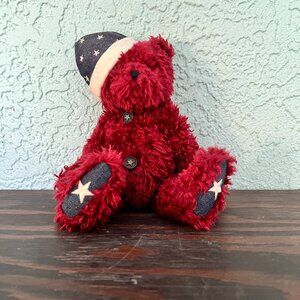 Celebrate vintage Americana with Liberty Q. Spangler, a retired Boyds Bear full of charm and character. Standing 10" tall, Liberty features rich burgundy chenille fur, embroidered star paw pads, and a blue star-spangled hat that captures the spirit of the USA. Originally released in 2005 and now retired, she’s a sweet addition to any July 4th display, vintage shelf, or teddy bear collection.