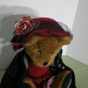 Very gently used, Boyds Bear "Rebecca Bearimore" teddy bear. Approx. 16" tall. Dressed in a velvet maroon dress, black overcoat, and fancy maroon hat with black netting. Fully jointed. Brown bear with black paw pads. Super cute, soft, and fluffy! Great for the collector! Check out my other bears listed - bundle and save! I like offers.