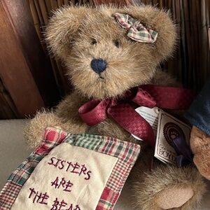 This 8” Sissy B Bear from Boyds Bears is a heartwarming, retired collectible! She holds a soft blanket embroidered with the phrase “Sisters are the Beary Best!” and comes with her original tag. She is part of the T.J.’s Best Dressed Collection and the “Thinkin’ Of Ya” series, made in 2001.