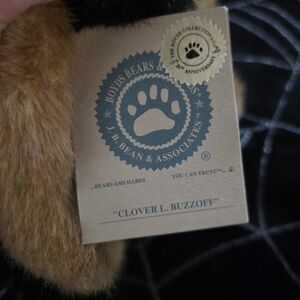 Adorable Boyds Bears plush with soft brown fur. Black accents add charm. Ideal for hugs.