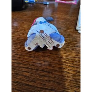 Cuteness abounds with this Boyds Bears figurine, a delightful addition to any collection! This charming piece features a spotted cow, clad in a pinstripe baseball uniform and a jaunty pink cap, ready for a day at the ballpark. Clutching a well-worn baseball glove in one paw and a bucket of popcorn in the other, this endearing cow exudes a playful spirit and love for America's favorite pastime. The attention to detail