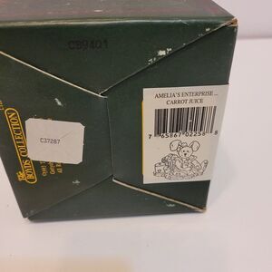 Add this adorable Boyds Bears figurine to your collection today! This piece, titled "Amelia's Enterprise...Carrot Juice," features a colorful design that will brighten up any room. The figurine is part of the Bearstones collection and is an original piece from the 1990s. The charming bear character, from the popular One Piece family, is holding a glass of carrot juice and will make a great addition to your decor. It comes packaged in a box and is perfect for all occasions. Don't miss out on the chance to own this unique and delightful Boyds Bears figurine!