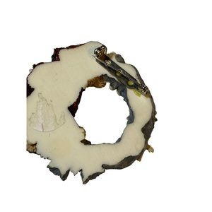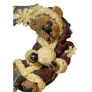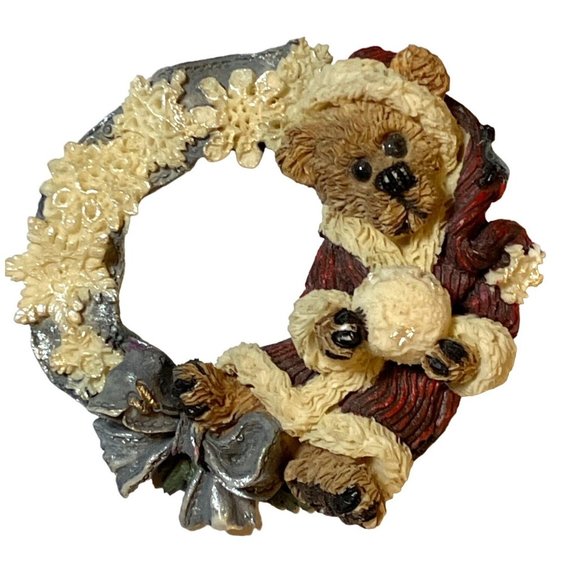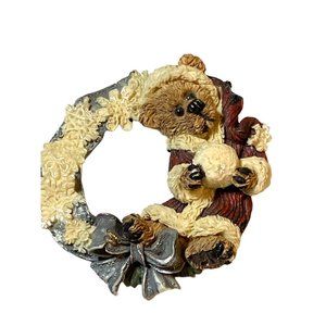 This vintage 1990's Boyd's Bears Folkwear Santa Bear holding a Snowball Pin Brooch, from Unmarked Boyd's Bear, is a rare find. Made of resin and multicolored, it's a charming addition to any collection.