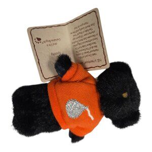 This delightful Boyds Bears Spooky Halloween Bear plush ornament. Complete with soft black fur and an orange shirt with a wrapped Kiss, this heirloom-quality decoration is an iconic collectible from The Heirloom Head Bean Collection. The Kisses ribbon adds a whimsical, heartfelt detail, making it a charming addition to any Christmas tree, wreath, or holiday display. Comes with attached hangtag detailing its story and significance, adding authenticity to its collectible charm.