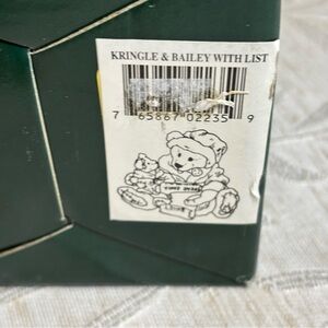 This product is a 1993 Boyds Bears collectible figurine from the Bearstones collection, featuring the characters Kringle and Bailey with a list. The multicolored figurine comes in its original box and is a boxed set, making it a holiday-themed decorative piece perfect for Christmas. Made by the renowned brand Boyds Bears, this figurine captures the nostalgia and charm of the holiday season.