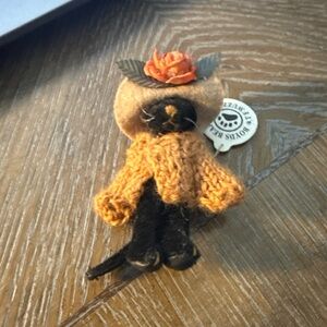 Authentic Boyds Bears collectible brooch. Features Miss Minnie Partridge design. Made of polyester materials. Official Boyds Collection piece with barcode tag.