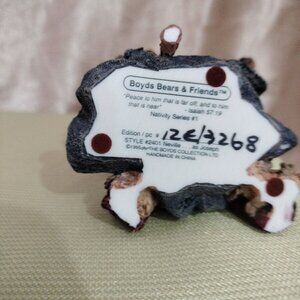 This Boyds Bears & Friends figurine features Neville as Joseph, with a beautiful contemporary design. Created by Lowenthal, it is a medium-sized figurine made of high-quality resin with a multicolor all-over pattern finish. This retired piece is a first edition, with a style number of 2401 and a production year of 1993.