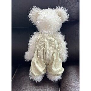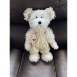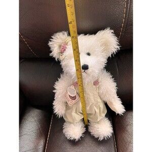 This Boyds plush bear is sure to brighten up any collection with its colorful design and charming song. The bear comes with clothing and a bow, and plays music from the classic film "Oh What a Beautiful Mornin'". This original, vintage piece was manufactured between 1988 and 2000, and is perfect for all occasions. The bear's brand is Boyds, and it is a licensed reproduction of the original. Don't miss out on this delightful addition to your bear collection!