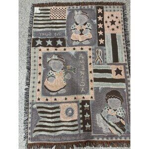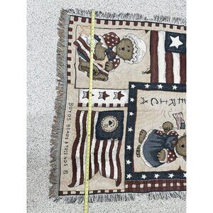 Boyds Bears Patriotic Tapestry Blanket Made In USA 1996 Vintage 70 X52" EUC