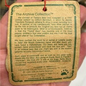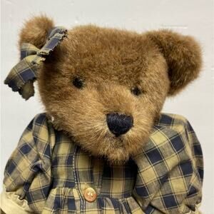 Boyd's Bears Plush Eugenia Archive Collection Bear is a delightful addition to any collection. This 16" bear features a beautiful blue plaid dress and is made of soft plush material. She’s in great condition with her original "ear bow" and hangtag.
