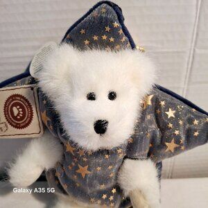 This plush bear features a charming star-themed outfit with golden accents, providing a delightful and huggable gift option. Its compact size and soft materials make it appealing to collectors and suitable for children.