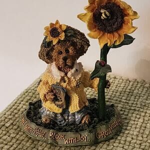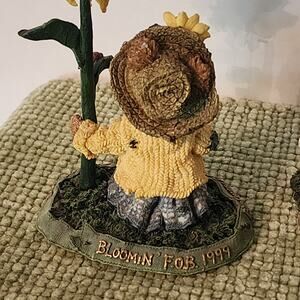 Adorable pair of 1999 Boyds Bears & Friends – The Bearstone Collection sunflower figurines. Both are beautifully detailed and full of country cottage charm, featuring cheerful sunflower themes and positive quotes on their bases.