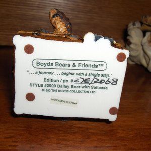 Boyd's Bears and Friends Lot of 2. Bailey Bear with Suitcase 1993, Bears and Bulls 1998, Approximate 3" tall. Very Good Condition, as Pictured. Thanks for Bidding!