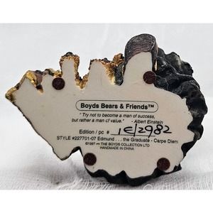 Celebrate a milestone achievement with "Edmund the Graduate," a heartwarming resin figurine from Boyds Bears & Friends. Crafted in 1997, this charming collectible measures 4.5 inches in height, 3 inches in width, and 2.5 inches in depth. It captures the essence of a proud graduation day and embodies the warmth and charm that collectors have come to love from Boyds Bears.