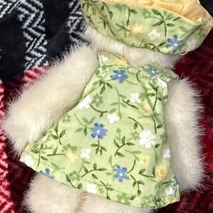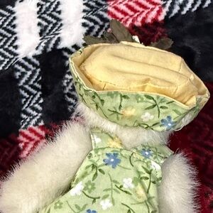 This Boyd's Bears plush bear is a charming addition to any collection. Dressed in a lovely green floral dress, "Ruth" bear is perfect for collectors who appreciate the theme of nature. Made by the renowned brand, Boyds Bears, this plush bear is a must-have for any lover of teddy bears. The bear comes with a dress and is made with the highest quality materials, ensuring its durability and longevity. Add this beautiful plush bear to your collection today!
