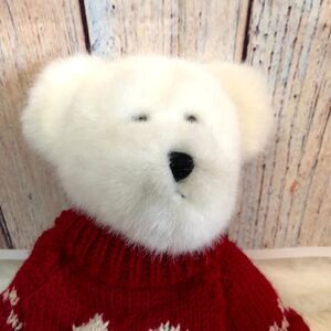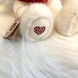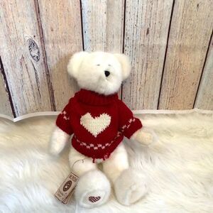 Boyds The Head Bean Collection, White Bear with red knit sweater, this bear is very soft - it is truly a collectors bear and still has the original tag on it. On one foot it has a red & white embroidered stitched heart.
