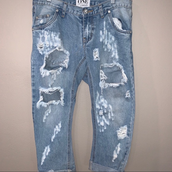 One teaspoon x Lonely Boy ripped boyfriend jeans. Sits at drop waist. Heavily distressed and minimal stretch. Meant to look very slouchy and “baggy”