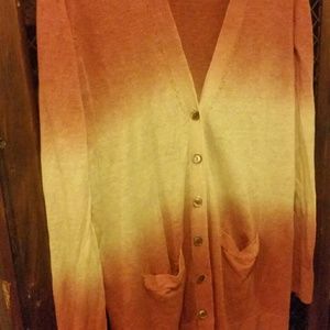 Dusty rose and bone colored long cardigan with 2 pockets. Perfect with leggings and booties for fall! Worn