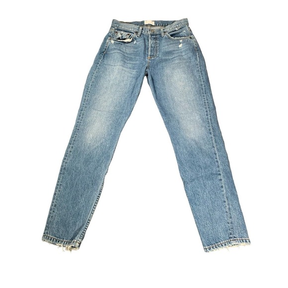 Boyish By Her Women Light Blue Mid Rise Billy Distressed Straight Jeans Size 27