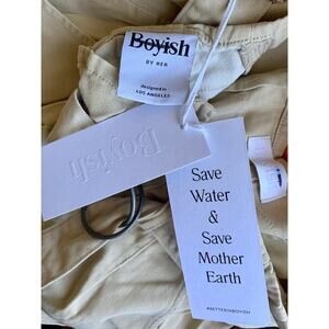 Boyish Clancy Paperbag Pleated Chino in Beige Size 26 Belted Fringe Hem Stretch
