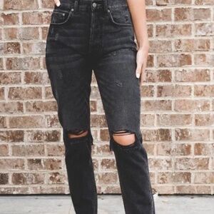 Stylish distressed straight leg pants. Features a classic black color. Perfect for casual wear.