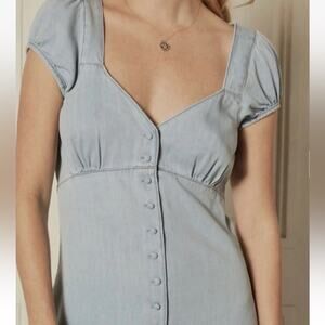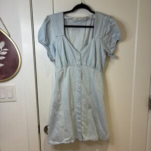 Elevate your style with this chic light blue dress. Featuring elegant puff sleeves and a flattering silhouette, it's perfect for any occasion.