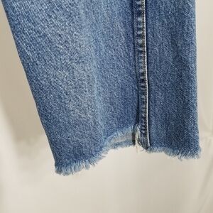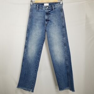 Boyish by Her Anthropologie Straight Raw Hem Jeans 24 Women's Kirby Washed Distressed Denim Midrise Embroidered Stripe Raw Straight Hem
