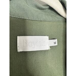 This Boyish Jeans Hendrix Jumpsuit is a must-have for any fashion-forward woman. With its kahki green color and solid pattern, it's perfect for both casual and travel occasions. The jumpsuit features long sleeves, a straight leg style, and a button accent for added flair.
