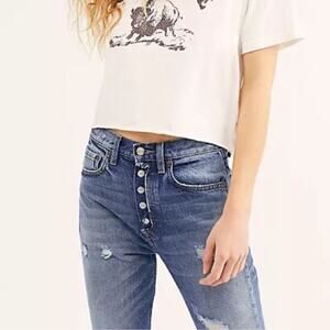 Boyish by Her Jeans The Billy Button Fly Jeans in Waterfront Wash. distressed.
