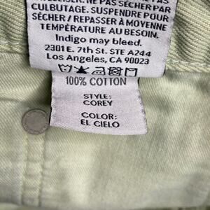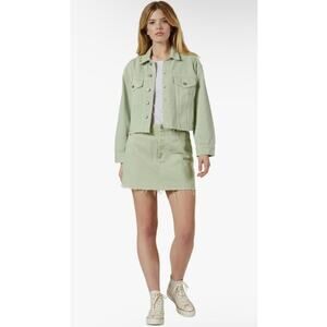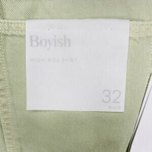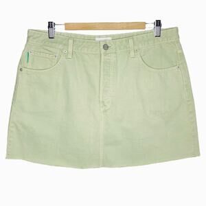 Boyish Jeans The Corey Denim Skirt in El Cielo, a pastel pistachio color size 32/US 14, see measurements below.