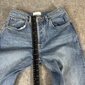 Boyish Jeans Womens 25 Button Fly Straight Leg Raw Hem Medium Wash Denim Stretch